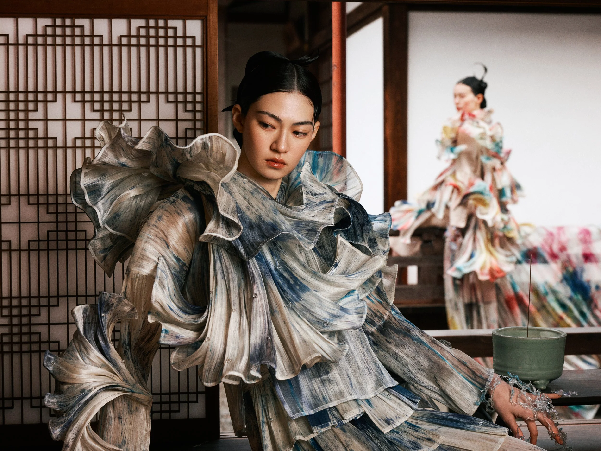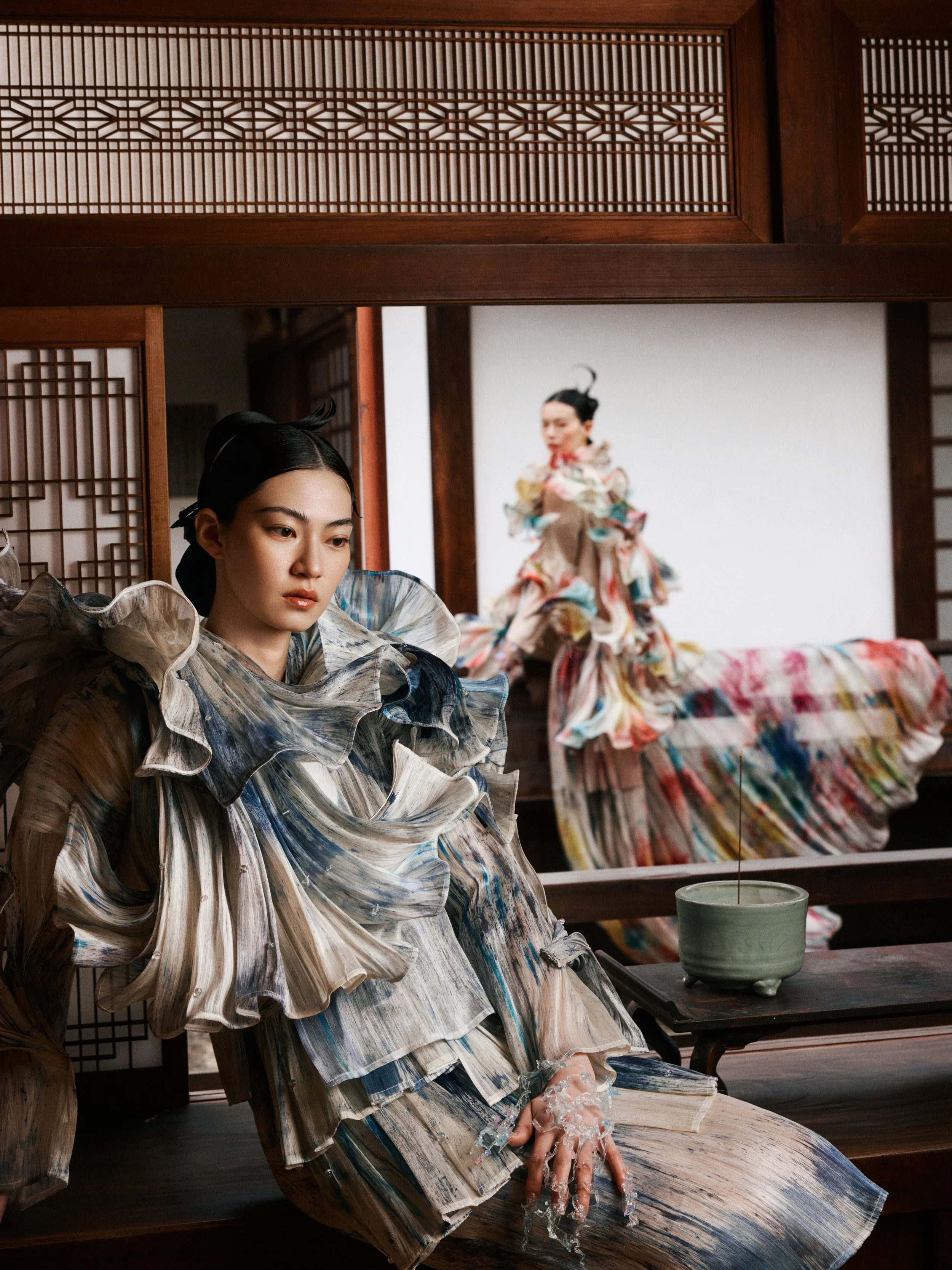 We were inspired by the famous Japanese Zen temple, Erin-ji in Yamanashi, the resting place of Takeda Shingen. SISIO’s FW2025 collection attempts to capture the fragile nature of life, and its fleeting beauty.